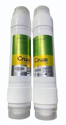 Keep your RO water purifier running at peak performance with the Cruze Gold Sediment + Pre-Carbon Inline Filter Cartridge Pack of 2. Specially designed to provide an effective pre-filtration stage, this combo removes physical impurities like dirt, dust, and rust, while the activated carbon filter eliminates harmful chlorine, bad taste, and odor from your drinking water. Compatible with Kent, Aquaguard, Livpure, Pureit, Blue Star, and other standard RO systems, this pack offers a simple and cost-effective way to maintain your water purifier and protect your RO membrane. With a flow rate of 0.75 GPM, working pressure of up to 100 PSI, and service life of up to 2000 liters, these filters are perfect for daily household use. Whether you’re replacing old cartridges or upgrading your filter set, Cruze Gold’s inline filters provide efficient, reliable, and clean filtration, ensuring pure, healthy water every time. 10-inch RO Inline Filter Cartridge Pack of 2 (Sediment + Pre Carbon) | Compatible with Kent, Aquaguard, Livpure, Pureit & All RO Water Purifiers | Removes Dust and Chlorine, etc.